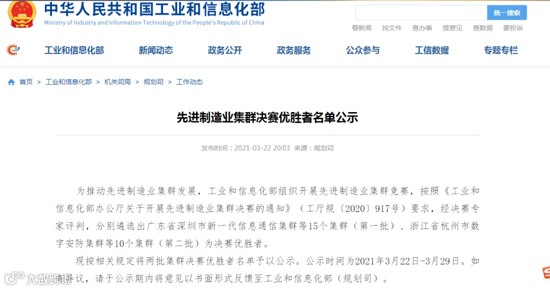 工信部“先进制造业集群竞赛”历时两年,旨在选出能承担国家使命、代表我国参与全球竞争合作的“国家先进制造业集群”,去冲击各领域“世界冠军”,被认为是国内最高规格的产业集群竞赛,代表着国内产业集群的最高水准。入围产业既要能体现产业的先进性、又要具备集群特征,更要具有较强的市场影响力。