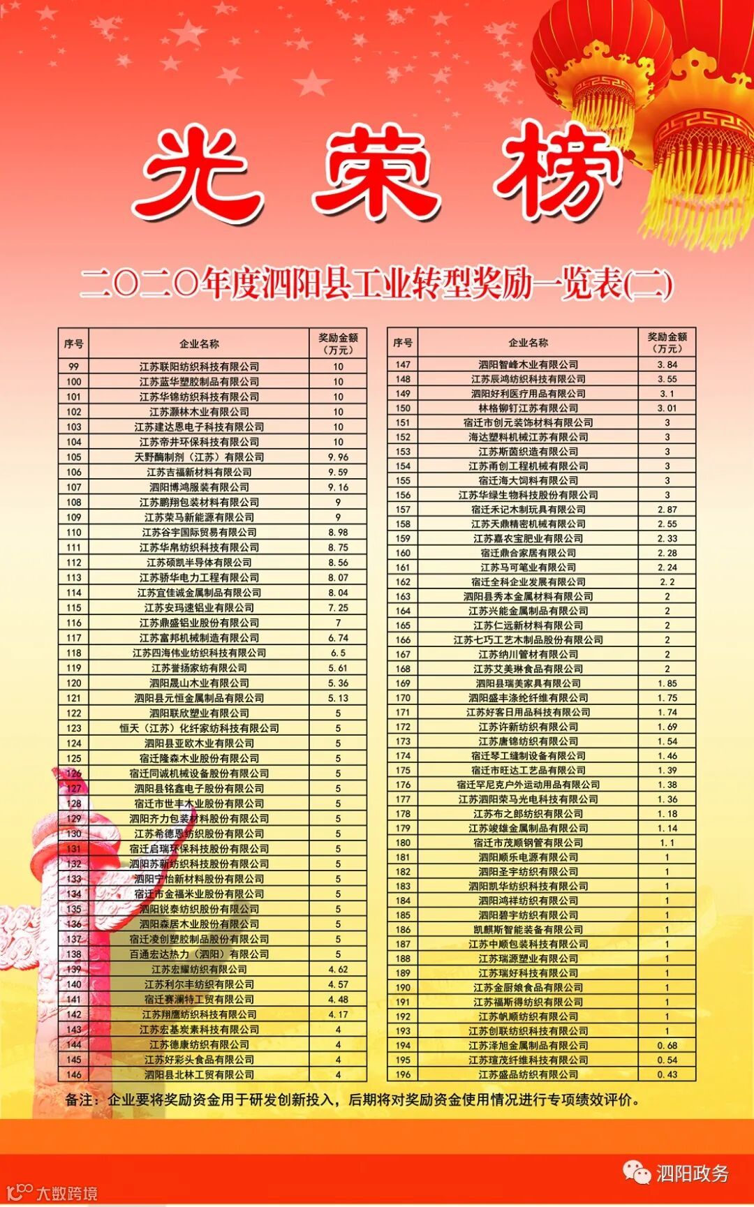 近日,在全县目标管理大会上,根据相关奖励政策,县委县政府兑现企业奖励资金8800余万元(含优秀企业家金质奖章奖励)。其中,县工信局对江苏稳德福无纺科技有限公司等196家企业兑现2020年度扶持工业转型发展奖励资金4310.91万元,县科技局向全县共计346家企业兑现科技创新奖励资金4375.73万元,为推动我县企业做优做强、科技创新、高质量发展注入了强大驱动力。
