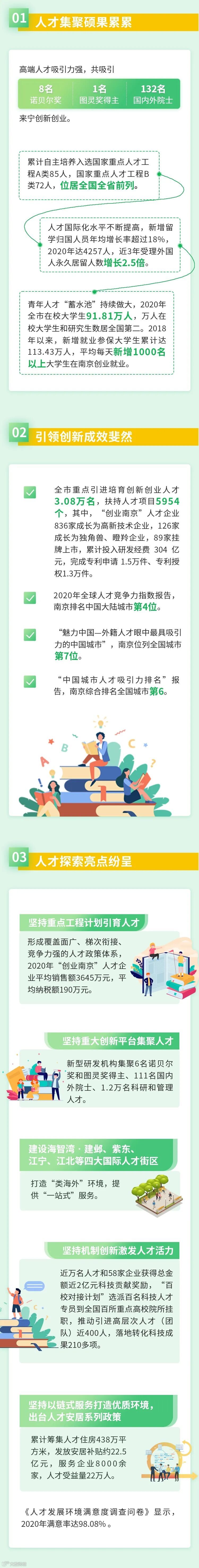 计划体系更加完备,建立高峰、先锋、宁聚、菁英计划体系,共14个人才项目组成。计划于“十四五”期间,重点集聚100个顶尖人才(团队),培育1000名创新型企业家,引进3000名高层次创新创业人才,累计引进创业就业海外留学人才超8万名、推动青年大学生创业企业突破10万家,重点支持一批在各领域引领支撑行业和产业发展的人才。