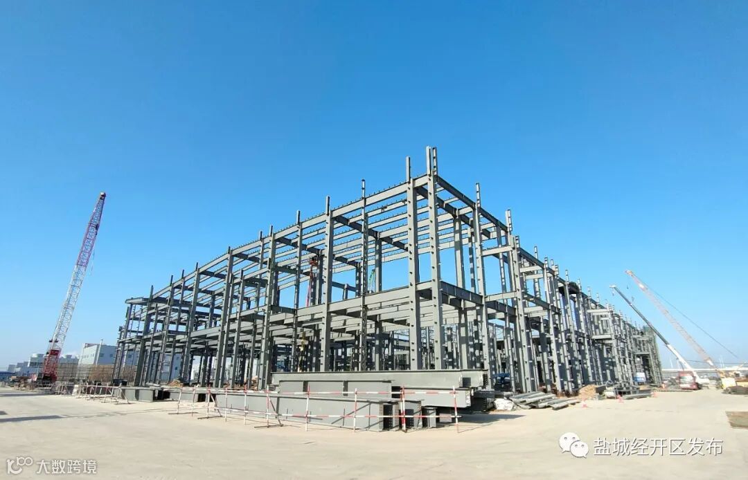SKI动力电池项目现场塔吊林立,工程车辆往来穿梭,各工种有序配合,500余工人加班加点施工,推动一期二栋17GWh工厂加快建设,钢结构厂房已经初具规模。据介绍,目前施工方打足人力物力,春节期间不停工,计划10月份竣工投产。
