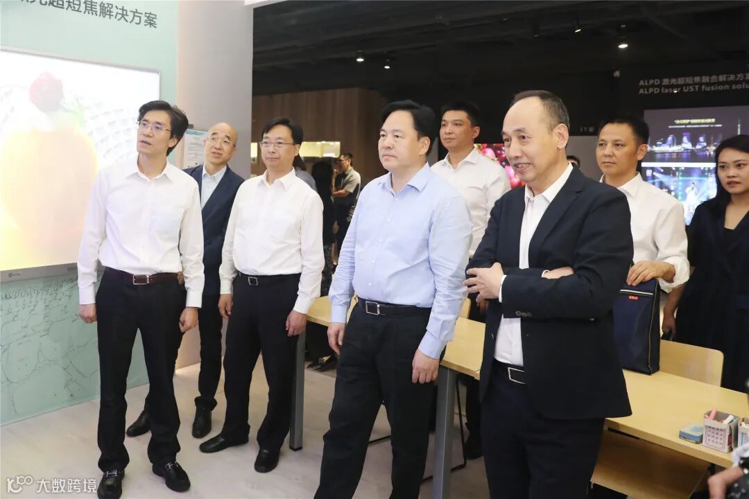 陈金虎在代区长周庆陪同下拜访了深圳光峰科技股份有限公司,光峰科技董事长李屹对陈金虎一行的到来表示热烈欢迎。光峰科技是中国首批科创板企业,在全球率先发明ALPD激光显示技术,占据行业制高点。光峰科技已落户钟楼经济开发区,建设中影光峰影视文化装备产业基地,首期设立激光数字放映机生产线、激光电视屏幕生产线、电影巨幕生产线以及展厅等,已于去年建成投产。