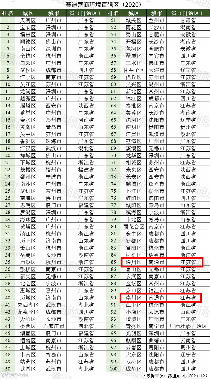 为更好评估全国各城区营商环境发展水平,2020年12月7日,赛迪顾问城市经济研究中心发布了赛迪营商环境百强区(2020)。