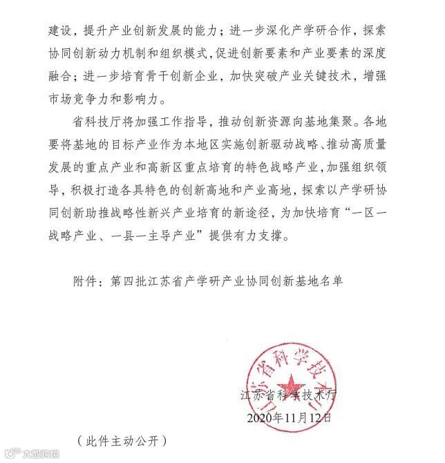 第四批江苏省产学研产业协同创新基地