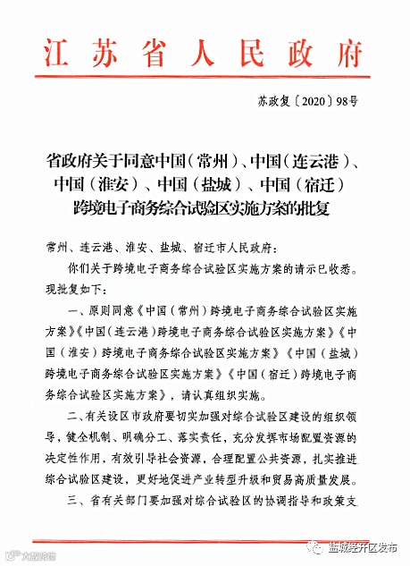 日前,省政府办公厅印发《中国(盐城)跨境电子商务综合试验区实施方案》(以下简称《方案》),明确推进中国(盐城)跨境电商综合试验区建设的总体要求、主要任务、主要举措和组织保障,为盐城跨境电商发展定下了“任务书”和“线路图”。