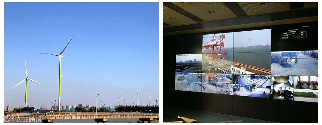 炎炎夏日,在港口集团6号码头上,往来车船频繁,却丝毫不见往日尘土滚滚的场景。沿路的扬尘监控装置实时监测着空气质量、风向指标,一旦数值超标就会自动启动场站内的喷淋系统;密闭廊桥内,全自动传送带井然有序地运送货物;迎着江风,8台风能发电机叶片缓缓转动,为整个港口集团提供了60%的生产用电量。
