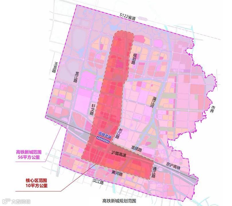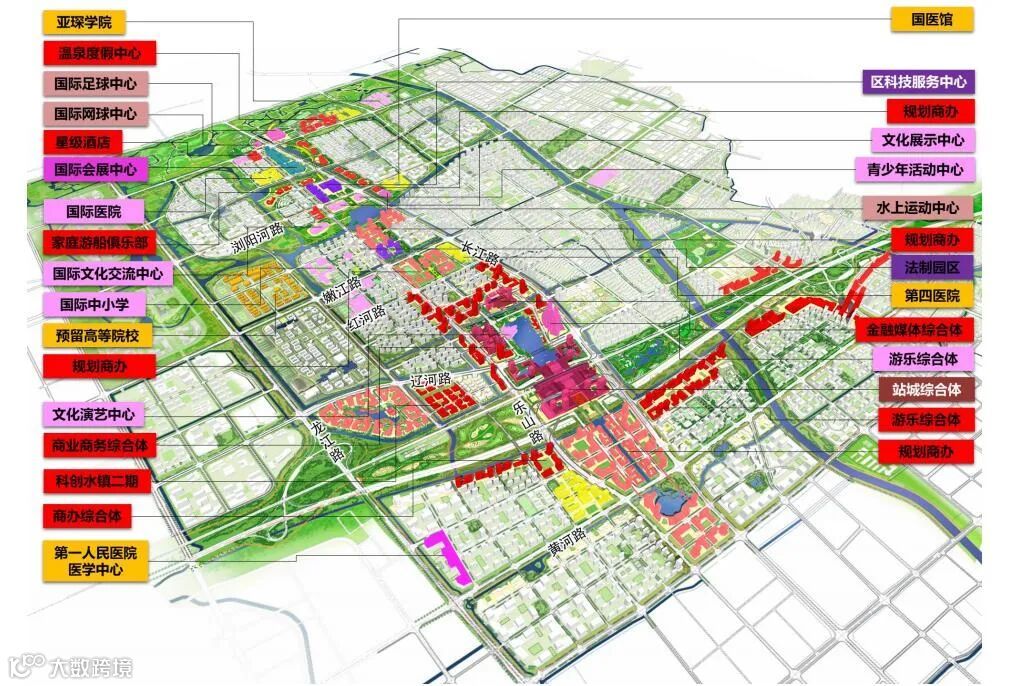 10平方公里的核心区,北起新龙生态林,南至黄河路,西至轩文路,东至长江路—通江路,呈“L”型结构,沿线集中布局“五大中心”项目设施。