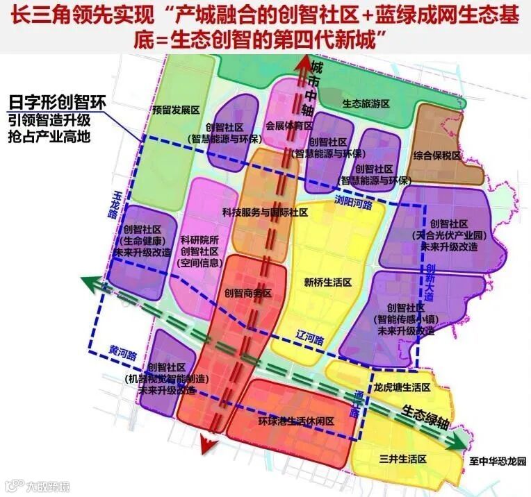 一是以常州北站综合枢纽为核心,构建站、城、湖共生体,以创新交流、金融商务、总部经济功能为主的创智商务中心;