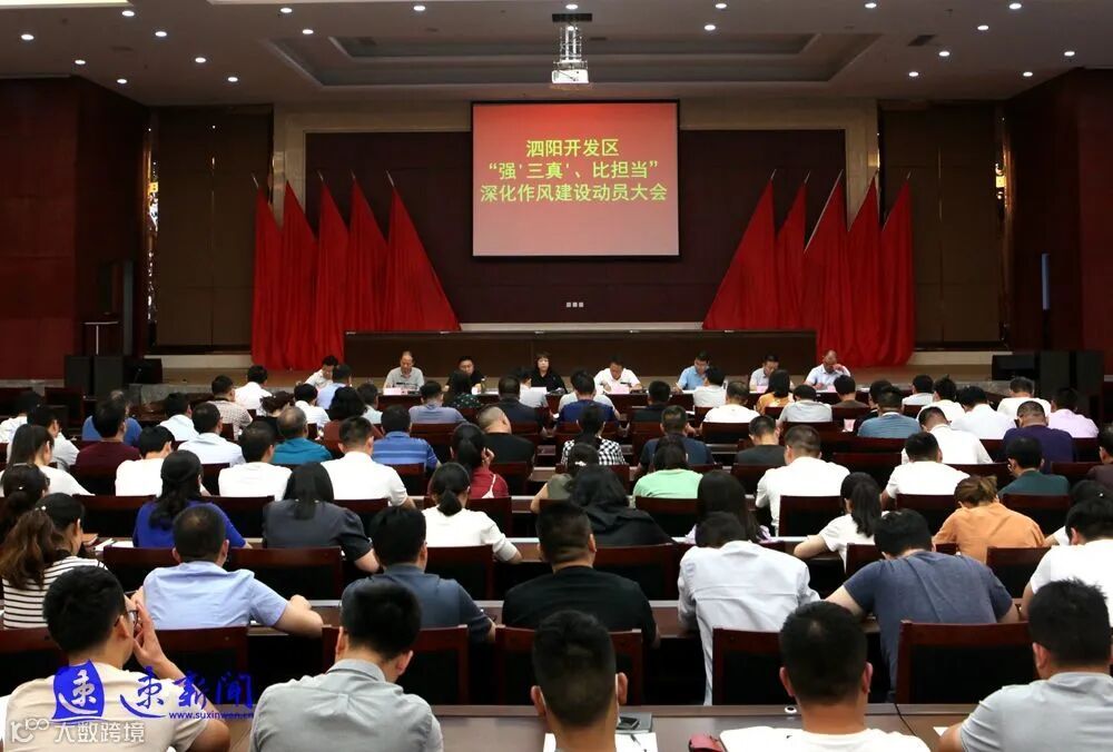 (速新闻记者余义磊)7月11日下午,泗阳经济开发区召开作风建设大会,贯彻落实市县“强‘三真’、比担当”作风建设大会精神并对下半年重点工作进行再强调、再部署,进一步动员园区上下围绕“六稳”“六保”要求,紧盯目标,全面发力,决战决胜,确保高质量完成年度各项目标任务。县委常委、江苏泗阳经济开发区党工委书记史素珍参加会议。