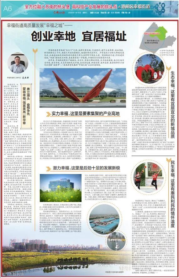 顺时而动,应势而为。幸福坚持以传统制造产业为支撑,以战略性新兴产业为先导,以高端生态旅游业为依托,形成具有较强竞争力与发展活力的现代化产业体系。站前核心区产业集聚,站后物流园区获评江苏省“重点物流示范基地”,市北科技城成为跨江合作的典范,万顷良田成为现代农业“孵化器”......曾经的阡陌农田嬗变为五大板块的产城布局,幸福成为港闸高质量发展的靓丽名片。