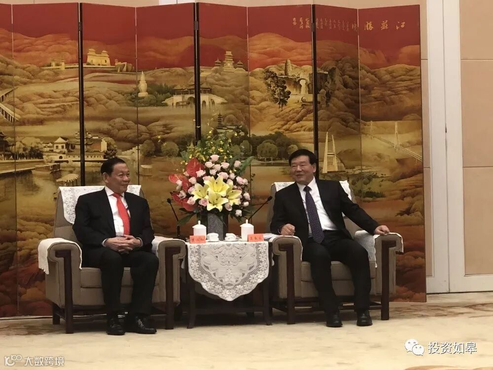 ▲18日,省委书记娄勤俭会见金鹰集团主席陈江和并出席项目签约仪式。