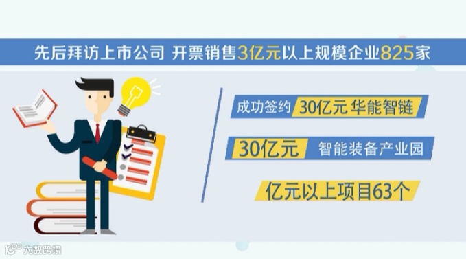 抓住重大项目“牛鼻子”,就能跑出发展“加速度”。今年以来,我县围绕培强“3+3”主导产业,深入开展招商引资项目推进“月月比、季季赛”活动,县四套班子领导带头招商,镇区主要负责人出征招商,专职招商人员驻点招商,先后拜访上市公司、开票销售3亿元以上规模企业825家,成功签约30亿元的华能智链、30亿元的智能装备产业园等亿元以上项目63个,组织重大项目集中开工活动2次,新开工亿元以上项目19个;5月在“深耕长三角·逐梦新盐城”线上投资环境说明会暨第十三届海盐文化节上,集中签约29个项目,计划总投资122.9亿元。