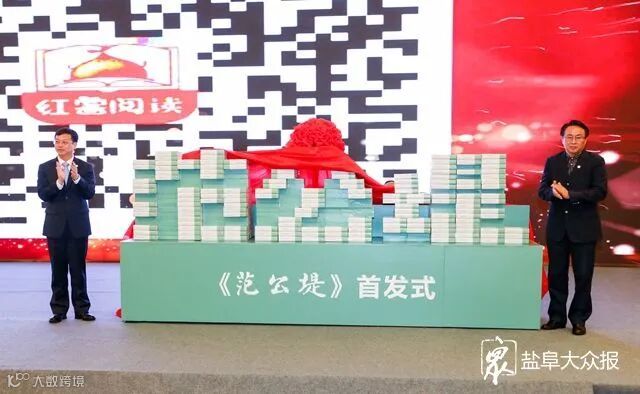 市委副书记、市长曹路宝和江苏凤凰出版社社长张在健共同为盐城首部长篇网络历史小说《范公堤》出版首发揭幕。
