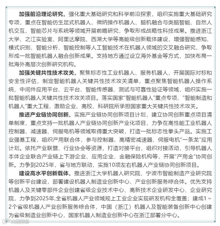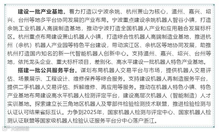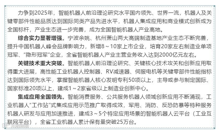 导读:近日,浙江省工业转型升级领导小组印发了《浙江省打造智能机器人产业高地行动计划(2020-2025年)》。
