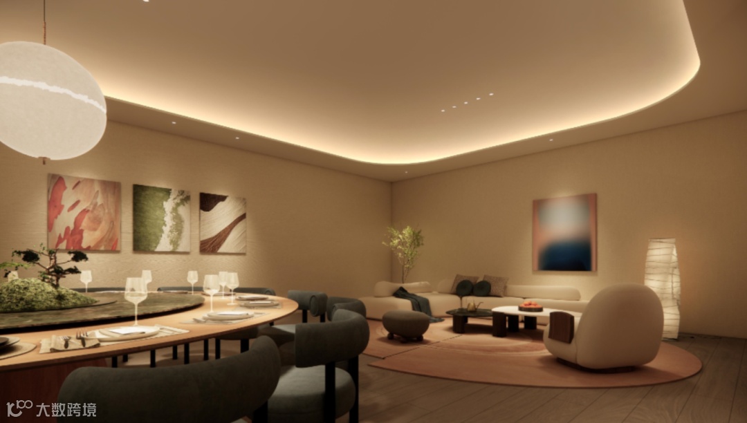 基于第二客厅的延伸,项目还提供了可容纳20人同时就餐的宴会包间及专业厨房等圈层际会空间,可根据需求,在自身屋内空间无法满足的前提下,预约此空间宴请邻里朋友或商务伙伴。