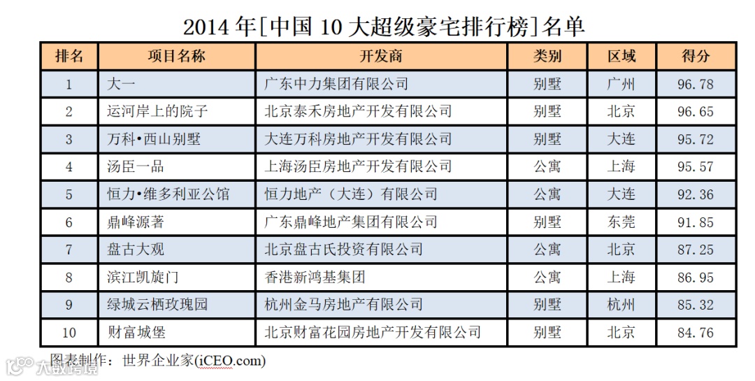 要知道,十大超级豪宅的排序是行业资深专家的指导下,利用世界企业家集团和世界地产研究院共同开发的“豪宅指数模型”LEI(Luxury Estate Index)确立的指标和方法,以交易价格为核心指数,以地理位置、自然资源、建筑设计、人文价值、建筑材料和安全私密度等6个强度系数进行加权分析,最后测评出前10名超级豪宅。