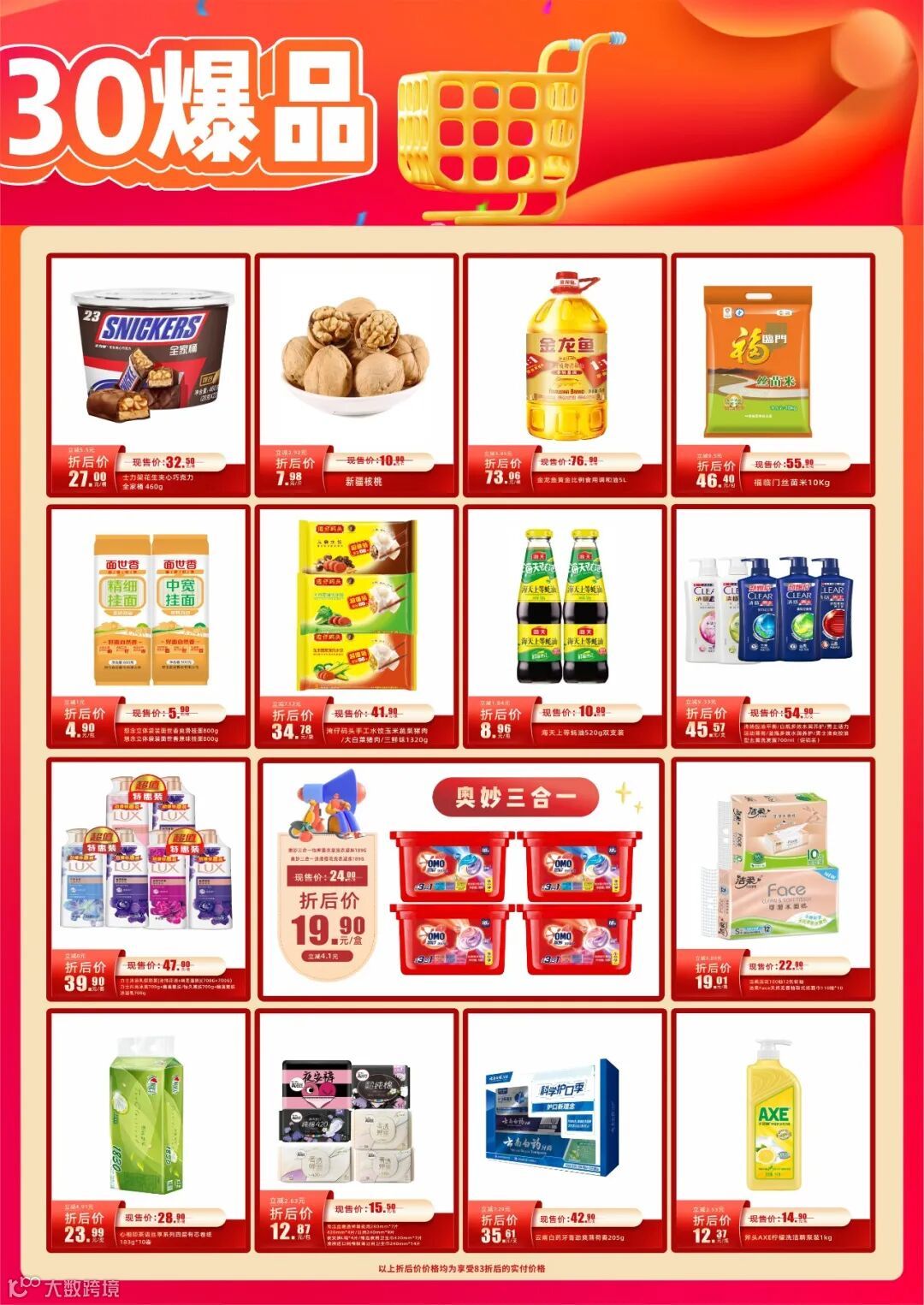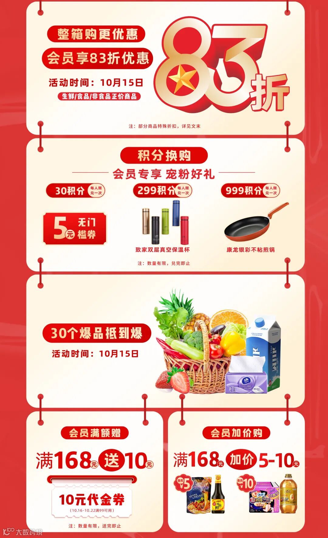 ps:国外口味烈酒/剑南春/舍得/钓鱼台/郎酒/洋河梦之南/金沙/食用油95折,电池/常温奶/奶粉/婴幼儿奶粉/婴幼儿保健品/小家电9折,购物袋/购物篮/购物车/飞天茅台/五粮液多棱/国窖/“奔富”葡萄酒/“名庄葡萄酒”/益力多系列产品/大家电/数码家电不参与活动。具体活动详情可到店咨询。