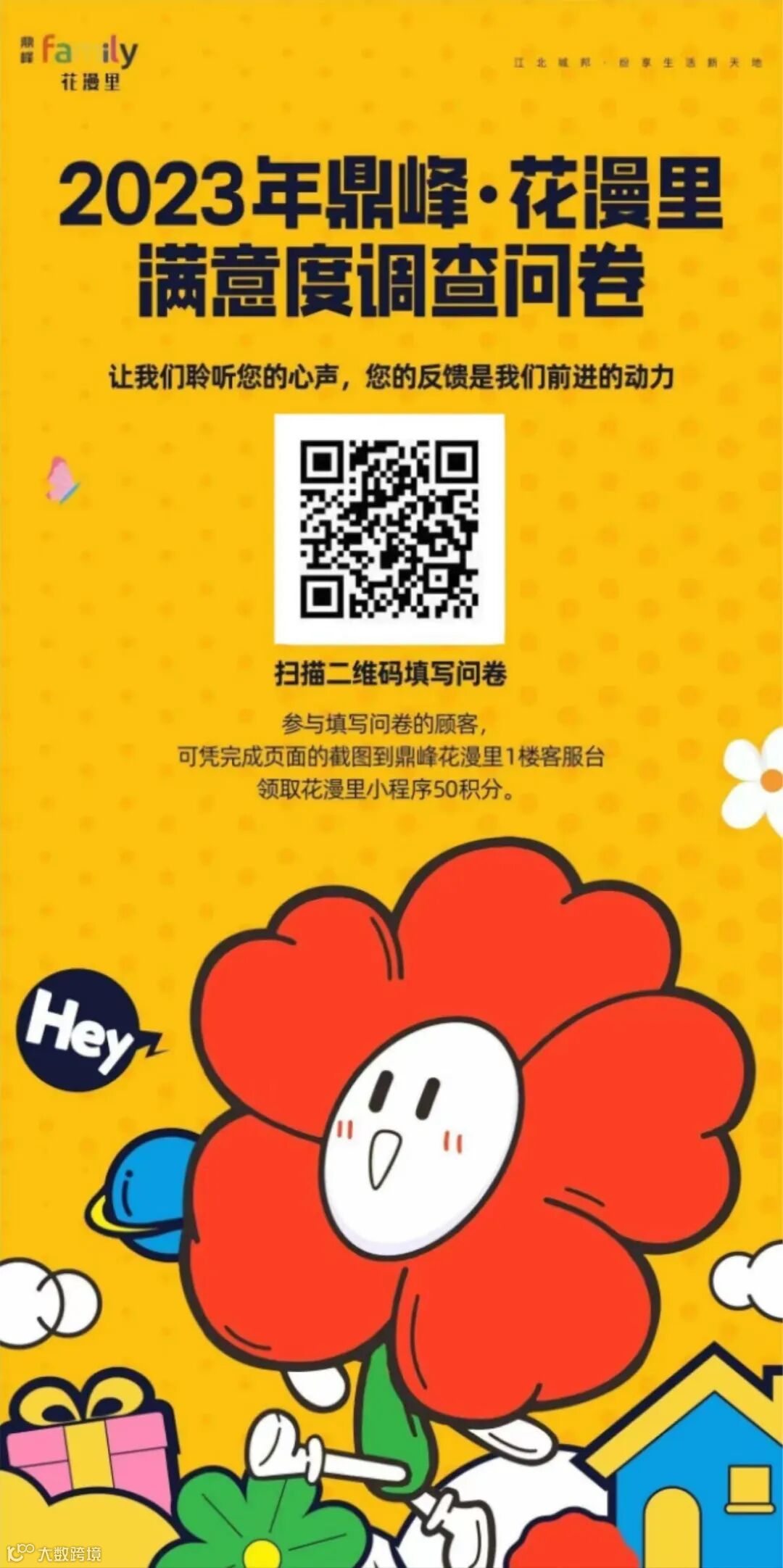 尊敬的顾客: 您好!为了向您提供更好的商品服务和更加温馨便捷的购物环境,鼎峰花漫里特此邀请您参与顾客满意度调查。本次调查大概占用您5分钟的时间。 您的意见将对我们的服务起着极为重要的作用,对您提供的信息,我们将进行严格保密。谢谢您的支持!