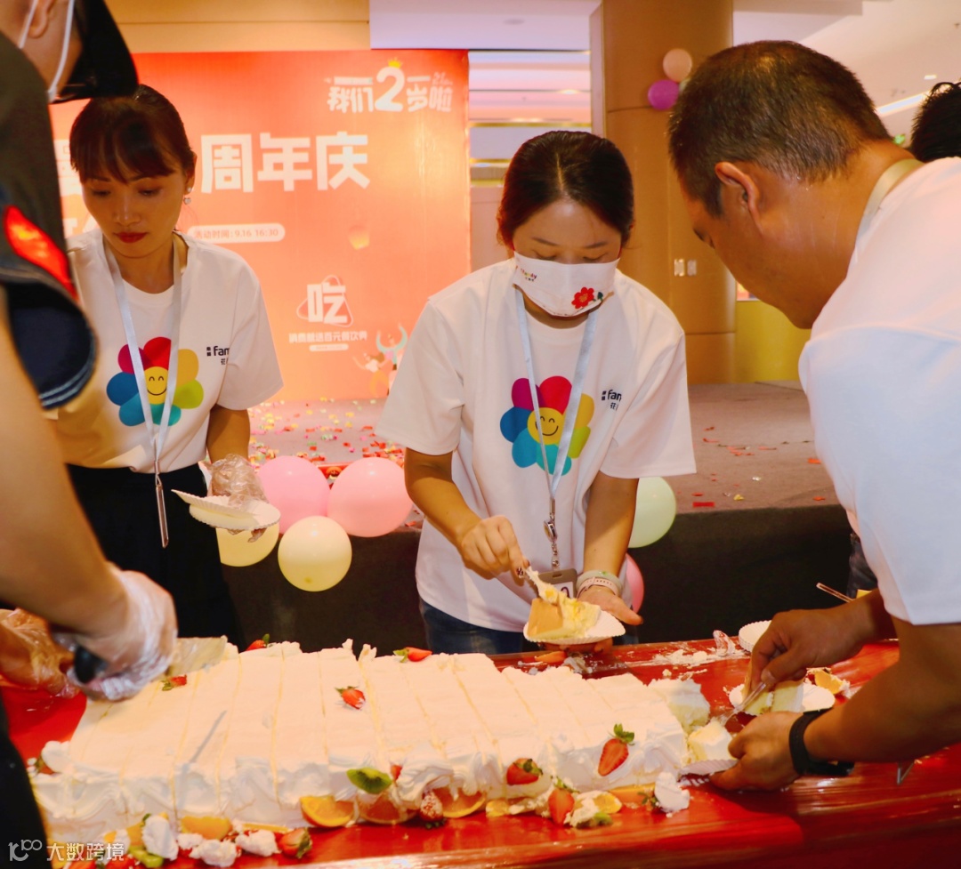 欢乐过后,喜悦加码。仪式的重头戏“蛋糕齐分享”环节中,蛋糕现场新鲜制作、现场派发,生日的喜悦,花漫里与所有到场的朋友一同分享。
