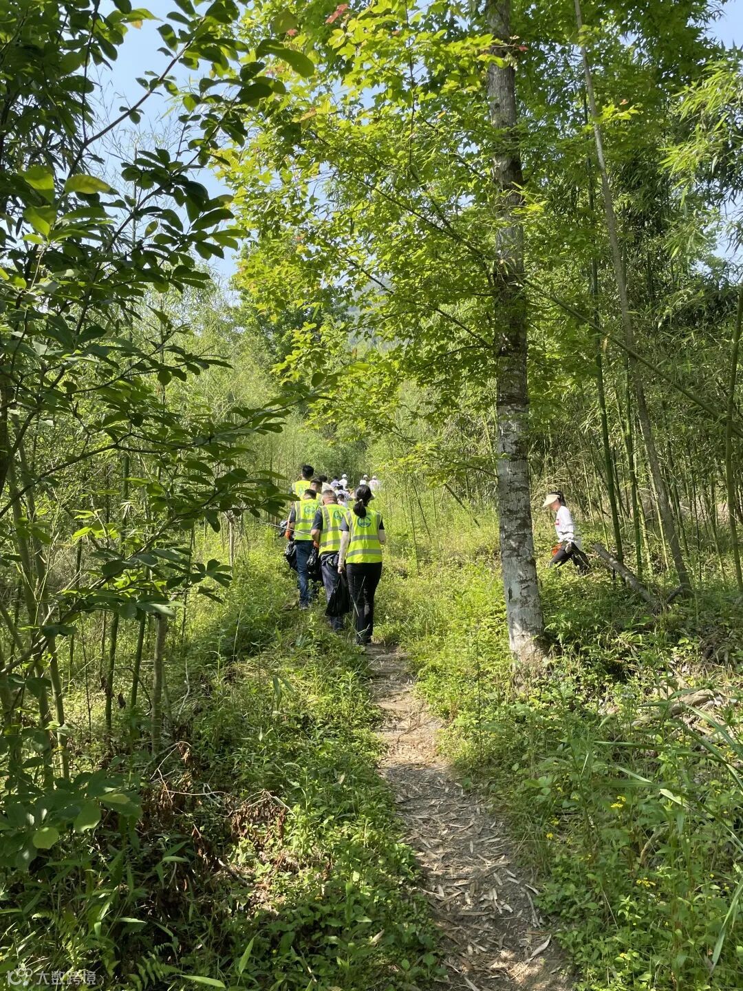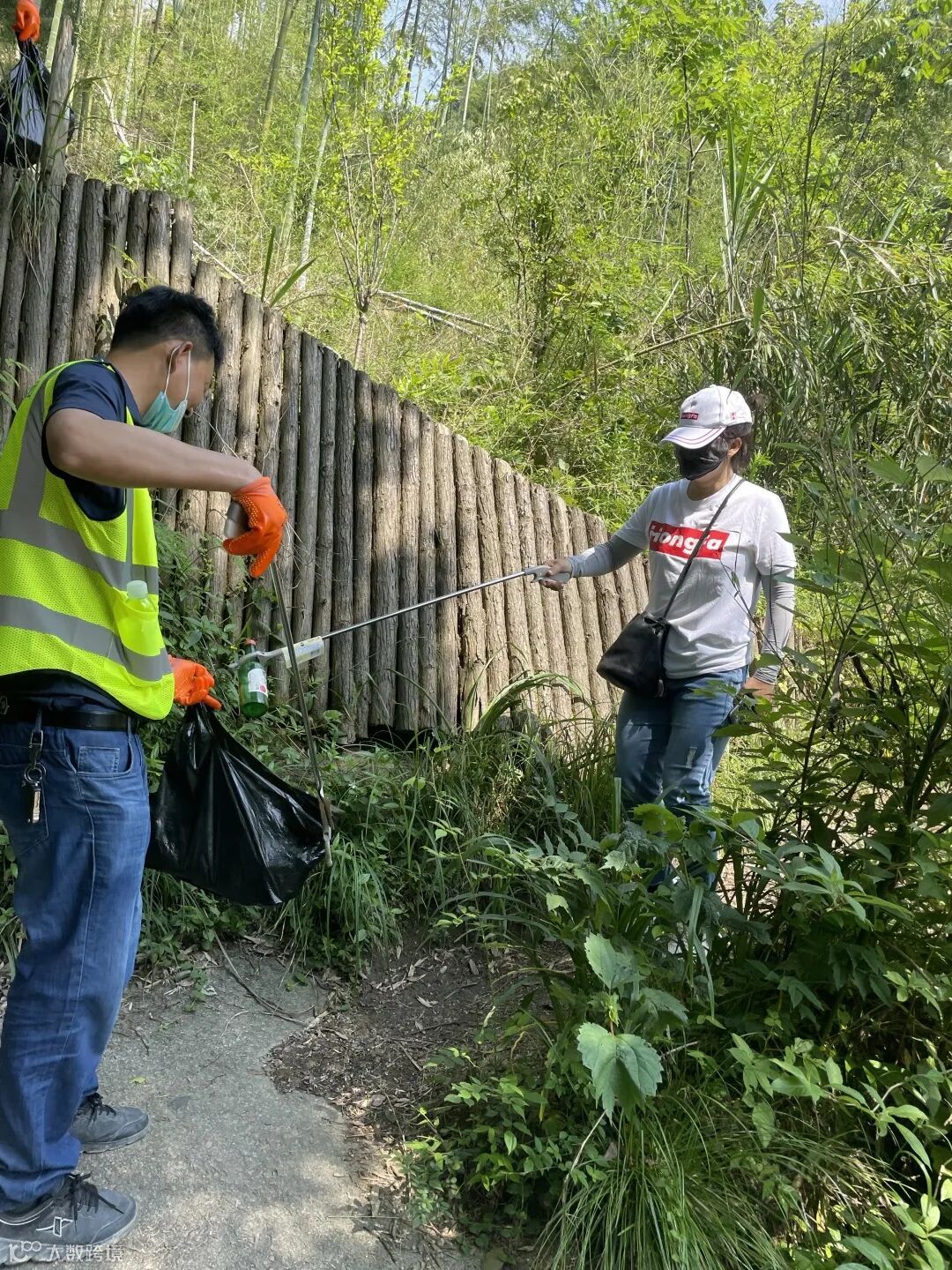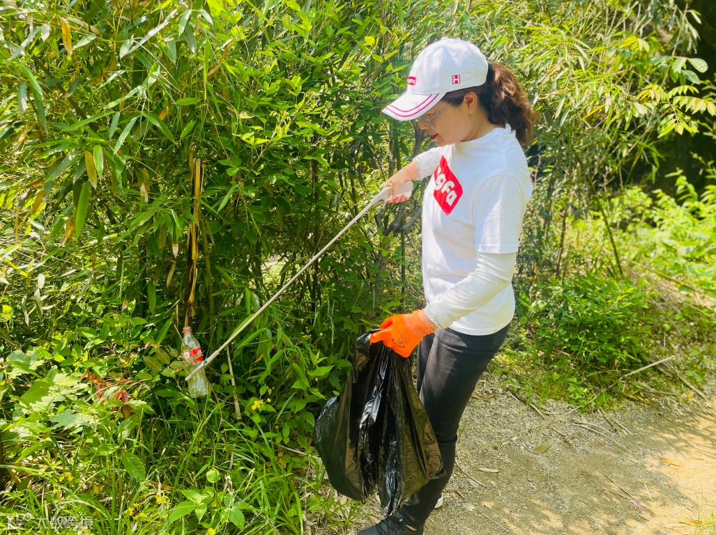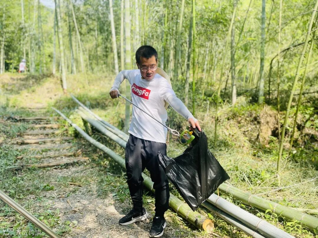三人一组,五人成团,沿路而上,将遗落的废纸、果皮、易拉罐水瓶等垃圾分类收集、打包整理、肩扛手提将它们安放在指定地点。过程中,难免让人觉得脏和累,但大家专心致志,不愿放过任何一处死角,齐心协力守护这方青山绿水,美好家园。