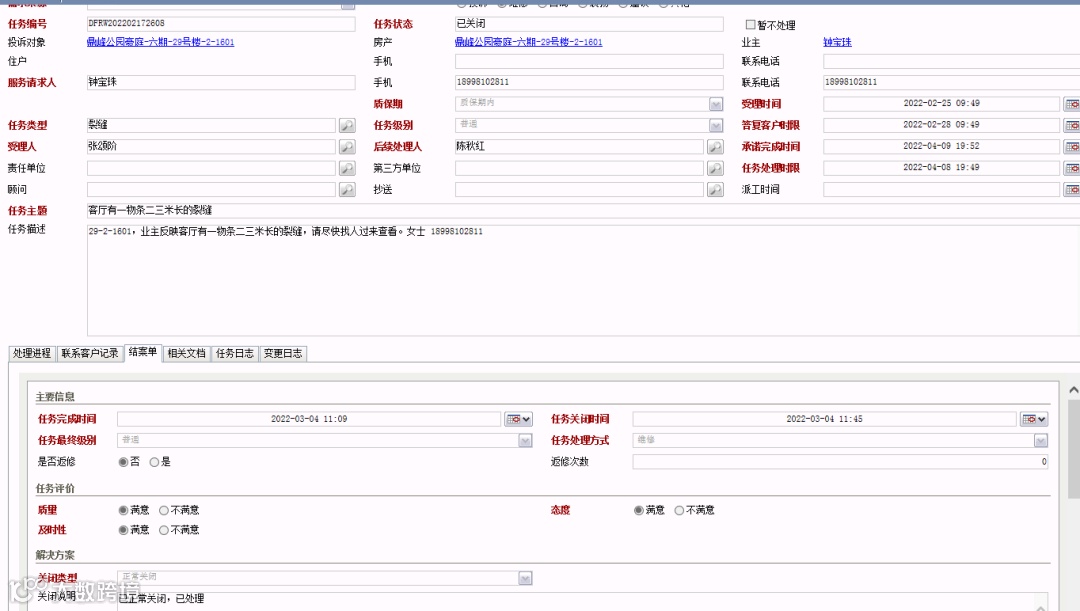 2、维修任务关闭后,400坐席工作人员再次对业主进行满意度回访以确保维修完成及业主满意。