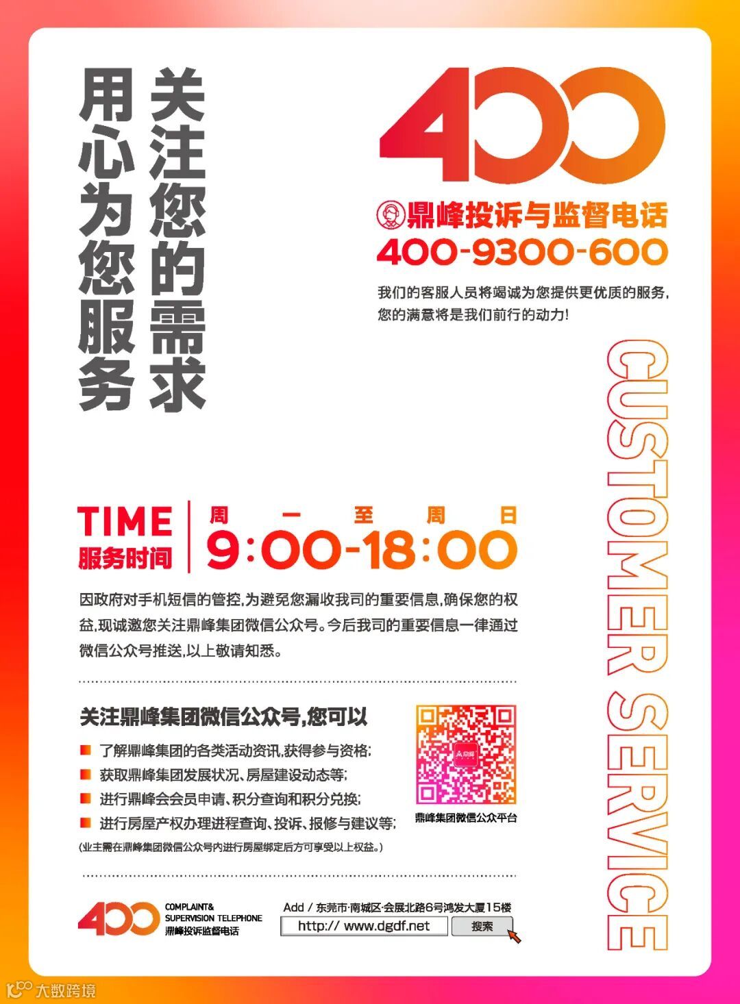 线上,400服务热线(400-9300-600)让业主实现一电报修的便利服务。