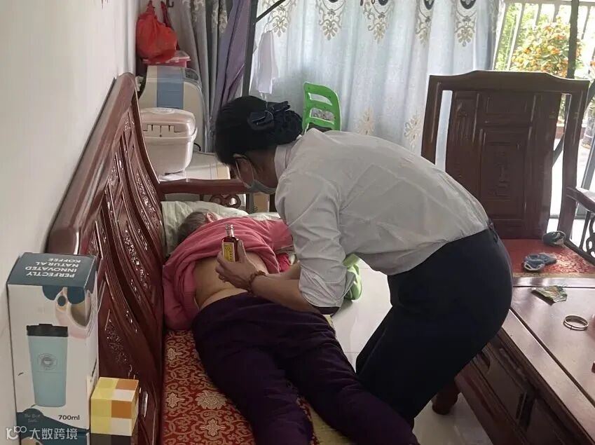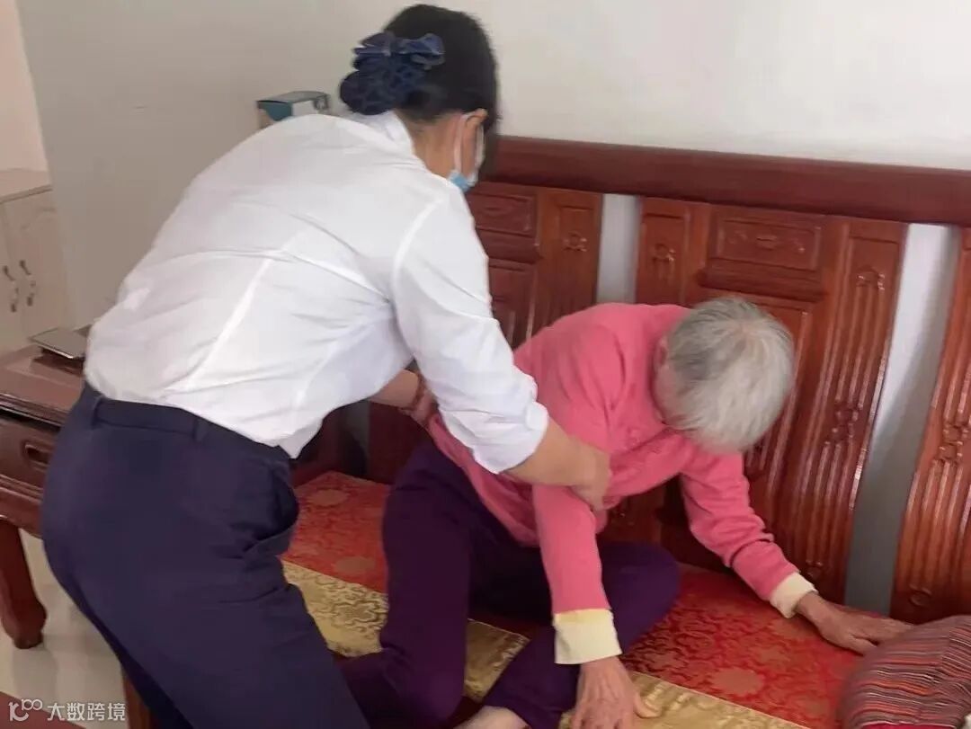 张海芳示意要帮杨奶奶擦点药油,以便缓解痛楚,但老人一开始表示拒绝,说不方便给海芳擦药。细心的张海芳听出来老人是怕不好意思,觉得麻烦他们,但如果现在不擦药,他们离开后杨奶奶根本无法自行擦药,于是两人一直耐心劝导杨奶奶,最后顺利帮老人擦药。