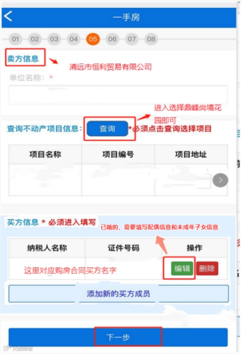 注意:(1)家庭套数只计算清远市清城区内家庭名下的套数。(2)如果是已婚的,则需要点击“填写家庭成员”进去后填写配偶姓名身份证号和未成年小孩的姓名身份证号。