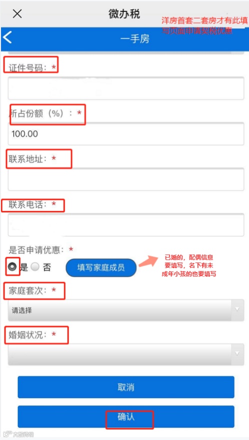 注意:点击”编辑”填写家庭套数和选择婚姻状况。
