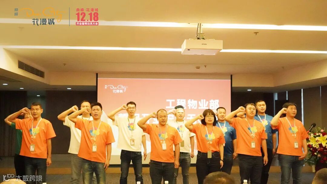 随后,鼎峰花漫城商业招商部、运营部、推广部、工程物业部、综合部全体商管同事宣誓: