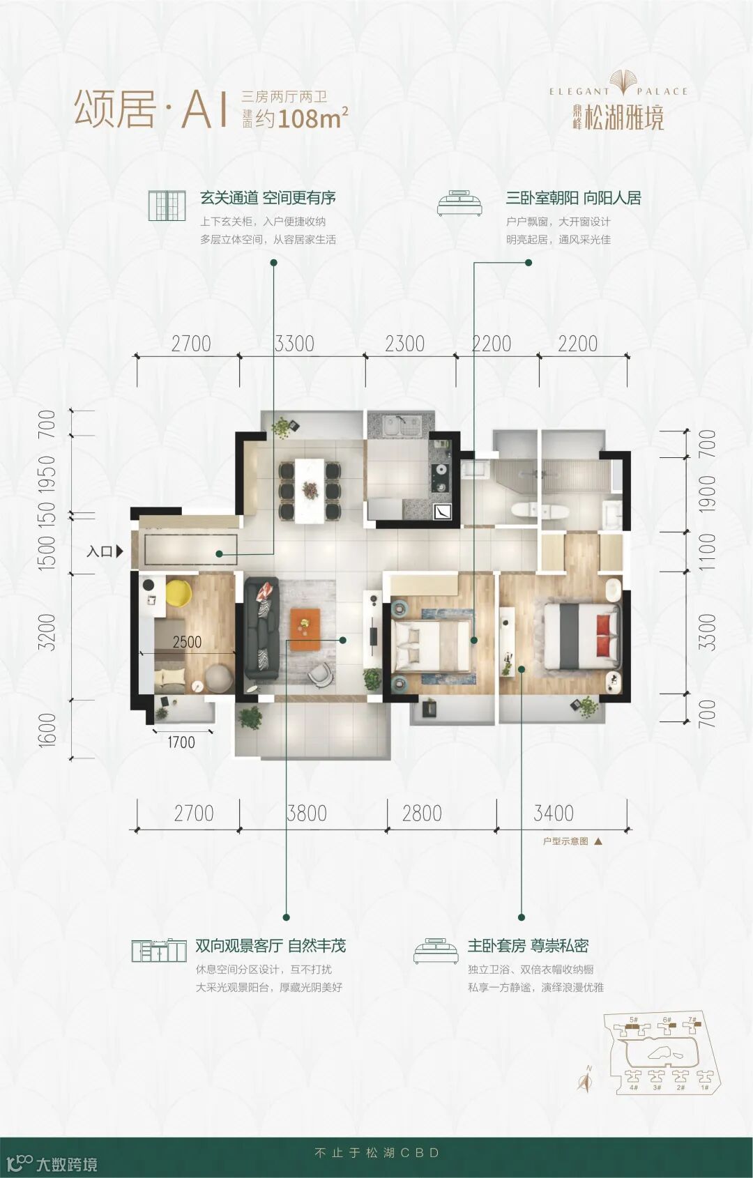 鼎峰松湖雅境占据松湖CBD-CLD中央生态居住区中心,距离松湖CBD直线距离仅约2公里,作为松山湖CBD的配套居住区,8分钟一路畅达松山湖北站与华润万象汇,一线同步松山湖发展红利。