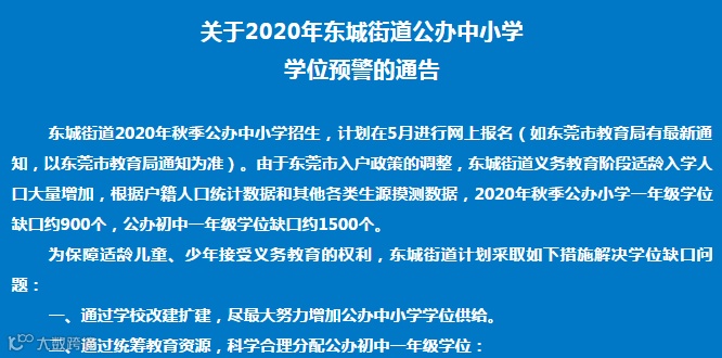 据东莞市教育局相关数据,自东莞入户新政发布以来,学生数量激增70%,而目前公办学位仅可满足约1/3入学需求!此前,东莞多个镇街已相继发布了秋季公办中学或小学学位预警通告。