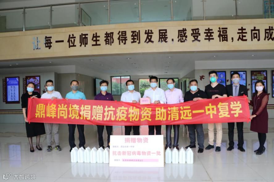 3月23日,清远鼎峰尚境项目张栓紧总、营销凌浩总及开发部和营销部同事在清远市自然资源局钟华山副局长携同下,走进清远市第一中学,代表东莞市鼎峰慈善基金会捐赠一批抗疫物资,为清远市第一中学做好复学准备。
