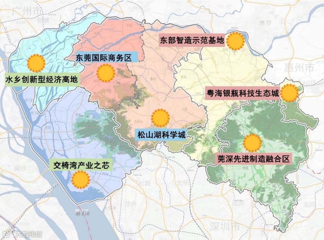 集中力量规划“七大产业承载区”, 加快发挥引领辐射带动作用,支撑全市现代产业体系建设。其中包括,东莞国际商务区、松山湖科学城、交椅湾产业之芯等。