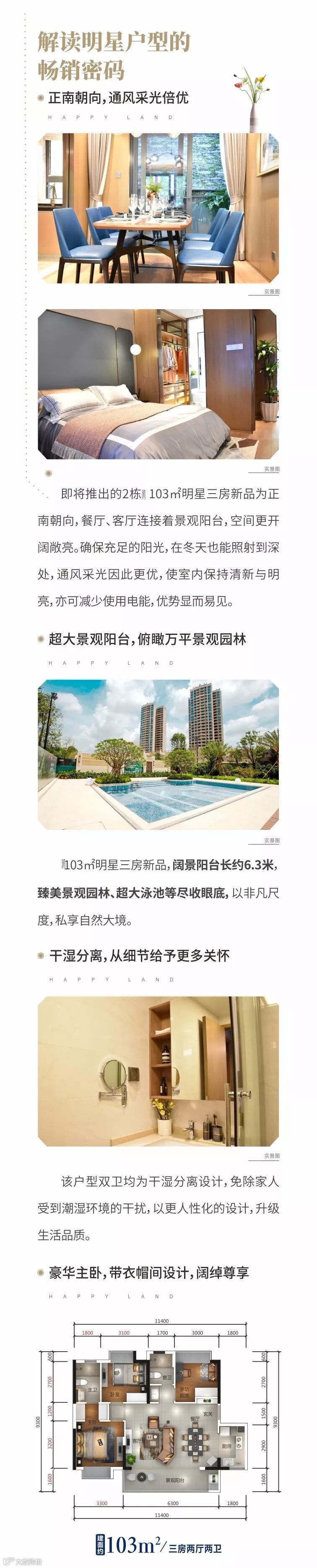 全新2栋约103㎡明星三房,全盘最畅销户型,应市加推