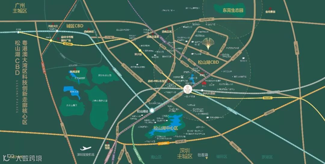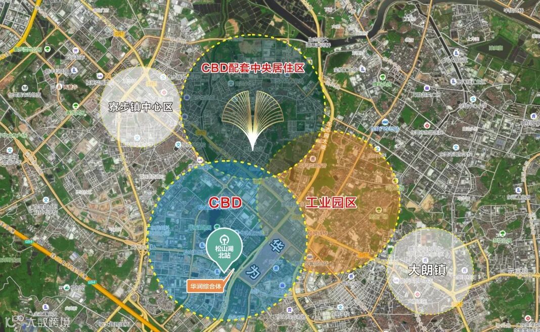 松山湖CBD,位于东莞几何中心,是松山湖重点打造的区域,目标是打造以轨道枢纽为核心的标志建筑群,结合城市综合体及企业总部基地功能,构建为“高度复合、高效聚集、高能辐射”的自创区及新型产业CBD。拥有一站5轨湾区交通枢纽、大型商业综合体、千亿级国家重企……是商业、商务和轨道交通高度聚合的第二个“前海”。