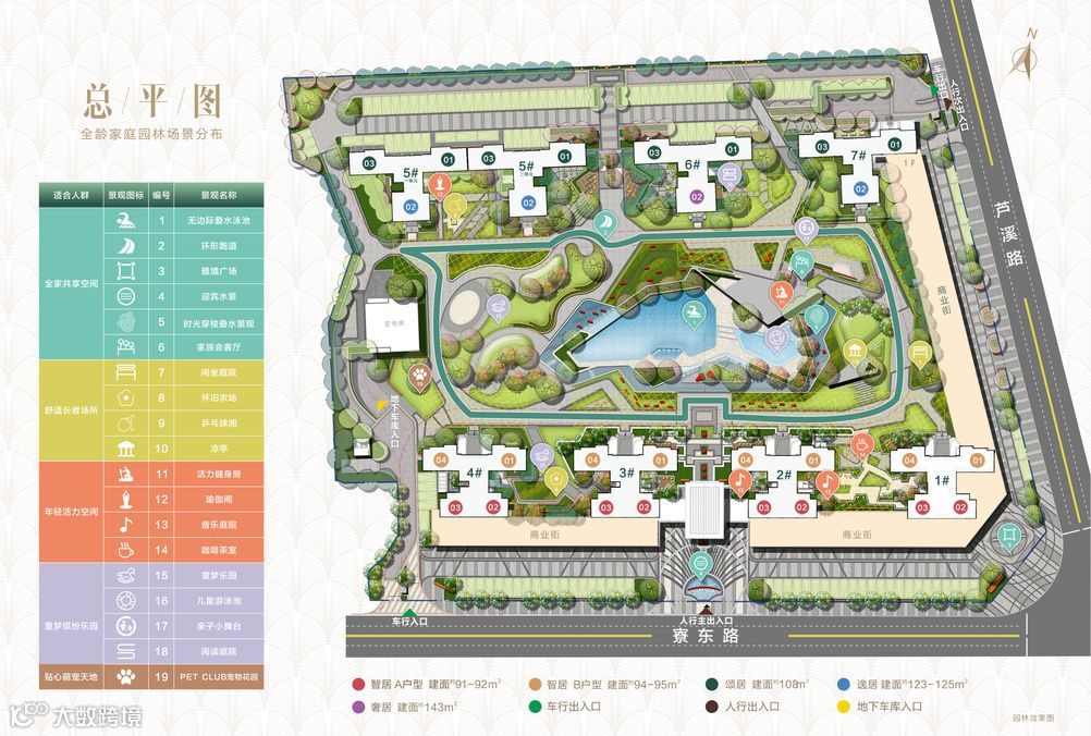 内部园区,特别邀请国际大师甘王中珞,定制设计,将整个园林空间划分为革新、过去、现在、未来、家园与健康五个时空阶段,提笔勾勒全龄家庭生活五大主题乐园(包括全家共享空间、舒适长者场所、年轻活力空间、童梦缤纷乐园、贴心萌宠天地),起笔描绘出一幅全龄宜居的未来艺术生活场景,为雅境注入优雅又充满质感的生活美学。