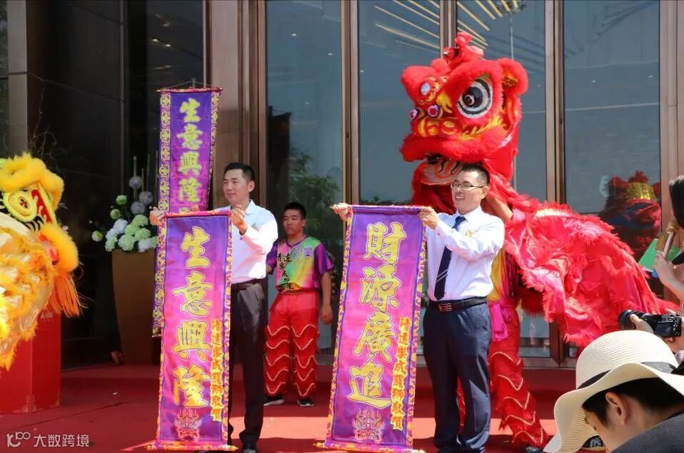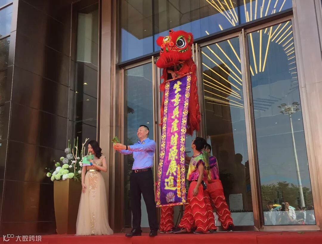 随着鼓乐声响起,营销中心现场成为一片欢腾的海洋。雄狮跃身摘下营销中心正门上悬挂的生菜,领导接财聚宝,寓意遍地生财。