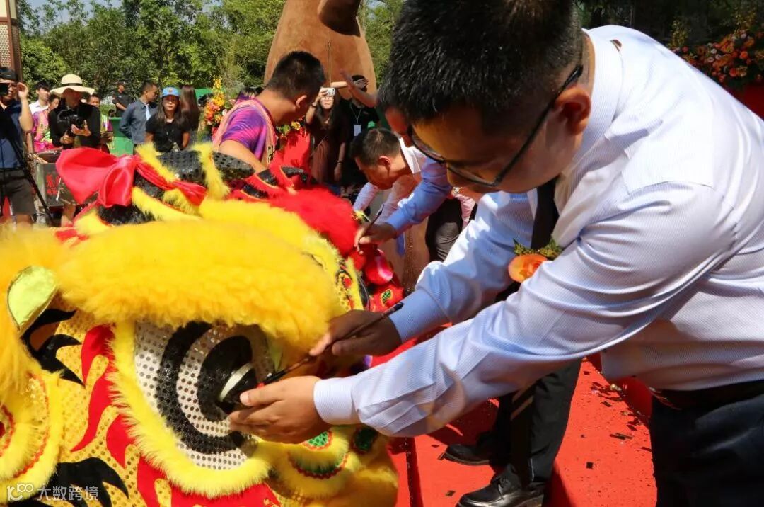 九州春色莺歌燕舞,四海征程虎跃龙腾。瑞狮欢舞歌盛世,龙腾狮舞送吉祥。4位领导在一片热烈的掌声中为雄狮点睛,礼炮响起,彩花四溅,雄狮气势如虹,腾跃而起。