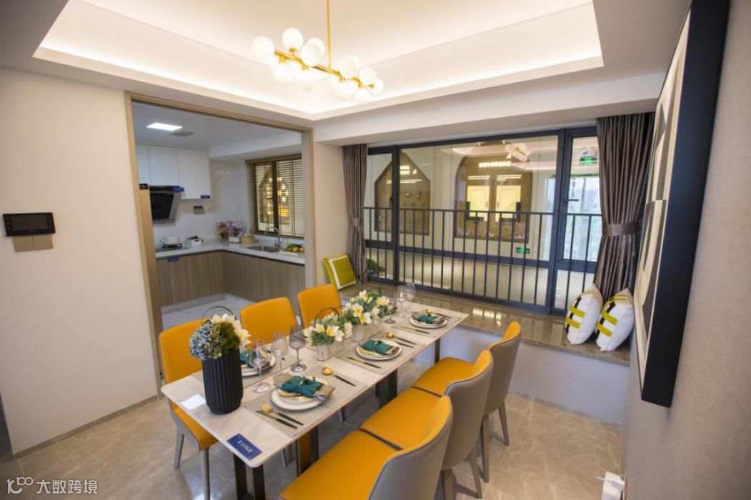 厨房U形设计,最大空间的景观厨房,还设计了花园式的大飘窗,饭桌边便可揽窗外风景,每个晚饭和家人一同对酌,共赏清远夜景,别有一番滋味。
