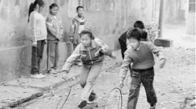 90年代初,小孩们在宵边玩着滚铁圈,你还记得当时一起玩铁圈圈的小伙伴吗?