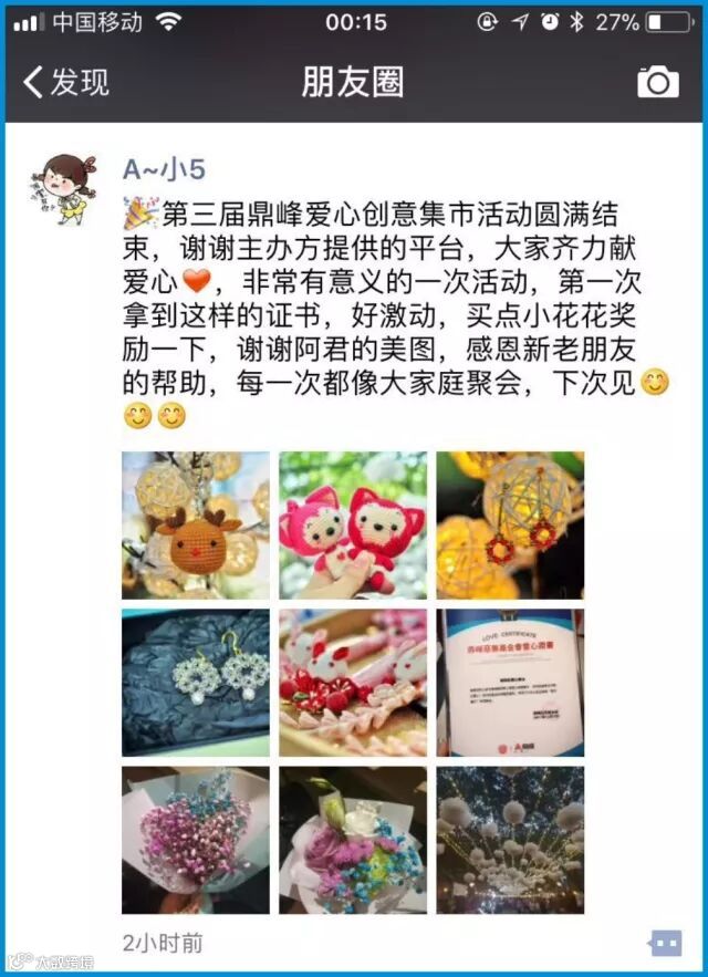 随着前两届的积累沉淀,鼎峰爱心创意集市不断在内涵包装视觉上创新和突破,真正打造一个富有情怀的爱心创意集市。正因为如此,在报名已经截止的情况下,还有不少达人纷纷要求报名参与年度盛事,为此我们新增了近20个摊位。此外,有些前两届参与本届遗憾落选的达人,开市当天过来赶集时发现有空档摊位,经过协商,我们满足了其第二天加入达人摊位的强烈意愿。