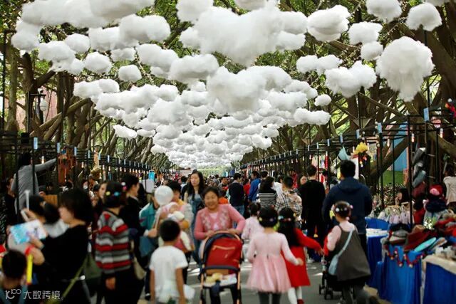 “云朵天空简直太美了”。刚去深圳看完teamLab展览的陈女士,也被眼前惊艳的古榕大道深深吸引了。“云朵天空”由不同大小的棉花配合暖黄色的灯光组合而成,白天在阳光的照射下仿佛镀上一层金边,洁白中透着诗意;夜晚在灯光的映照下则如梦如幻,美轮美奂。当天光临集市的很多市民,纷纷在古榕大道上拍照留影大晒朋友圈。据主办方表示,每一届的爱心创意集市,古榕大道都有一个特定的主题,第一届是彩虹伞,第二届是星光大道,而本届则是云朵天空,每一年都争取有所创新和突破,在包装视觉上打造一个独具特色的集市品牌。