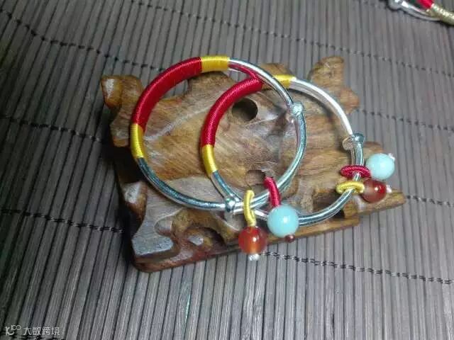 用绳和银将石头包绕成饰品