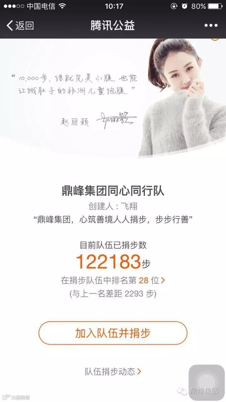 第三步:点击加入鼎峰集团“同心同行”队,就可以开启爱心捐步之旅啦