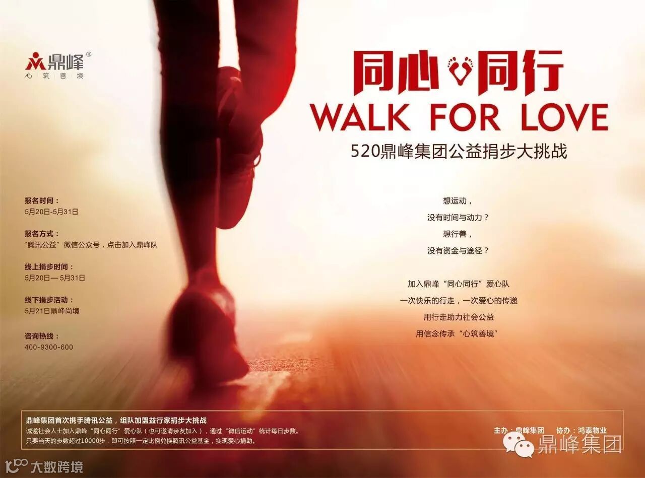 5月20日,“2016益行家”全民捐步大挑战正式启航。鼎峰邀你携手同行,行走间传递爱与温暖。