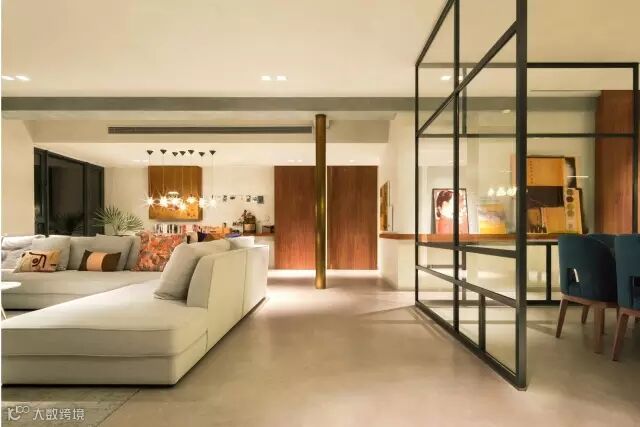纵深约10米的客厅是令人叹服的存在。为了营造更舒适的居住体验,拥有更宽广的活动空间,茶室、餐厅、客厅已融为一体。