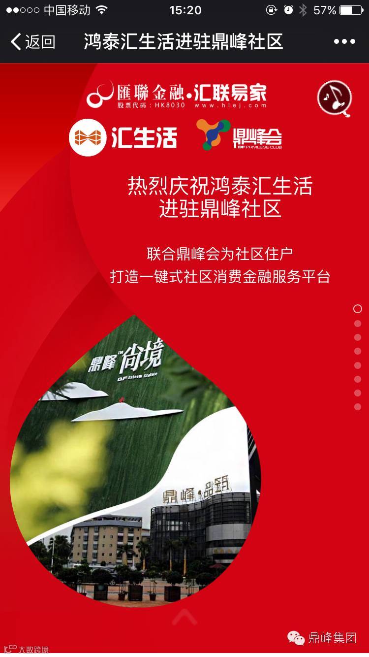 汇生活将为鼎峰社区住户打造一键式社区消费金融服务平台