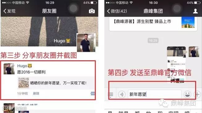 3、 截图并发送给“鼎峰集团”官方微信