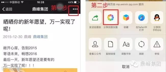 1、 点击右上角分享到朋友圈(图)