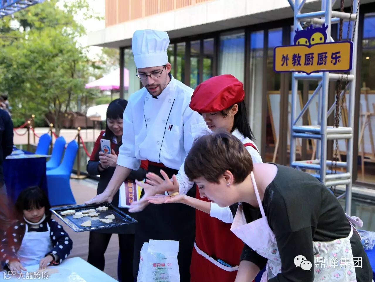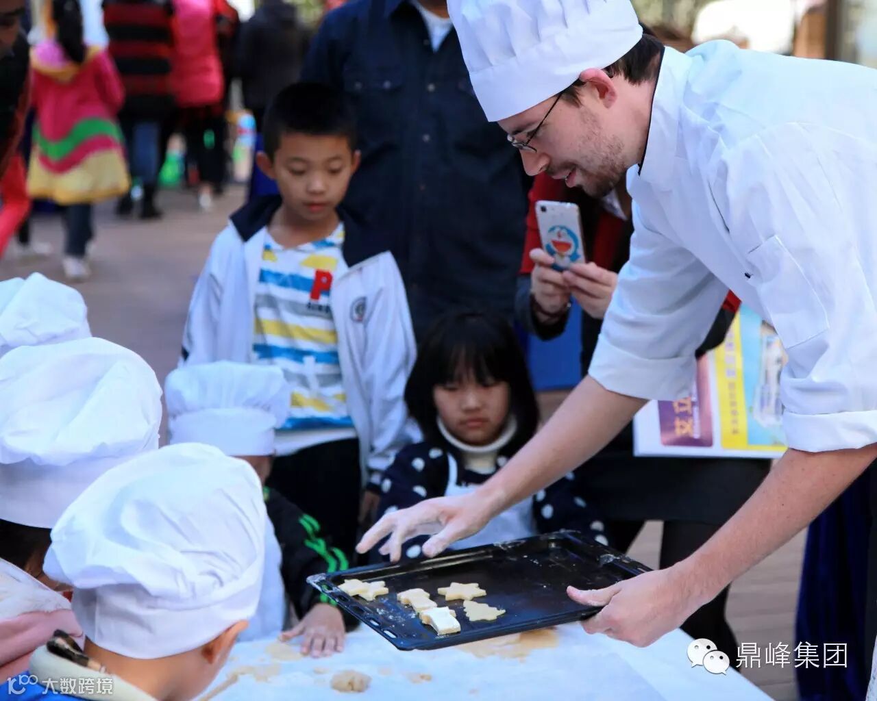 来自艾立森国际幼儿园的外教最受小朋友欢迎,萌萌哒,现场教小朋友制作可爱的小饼干。